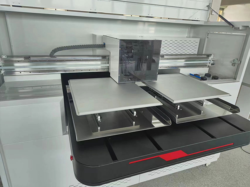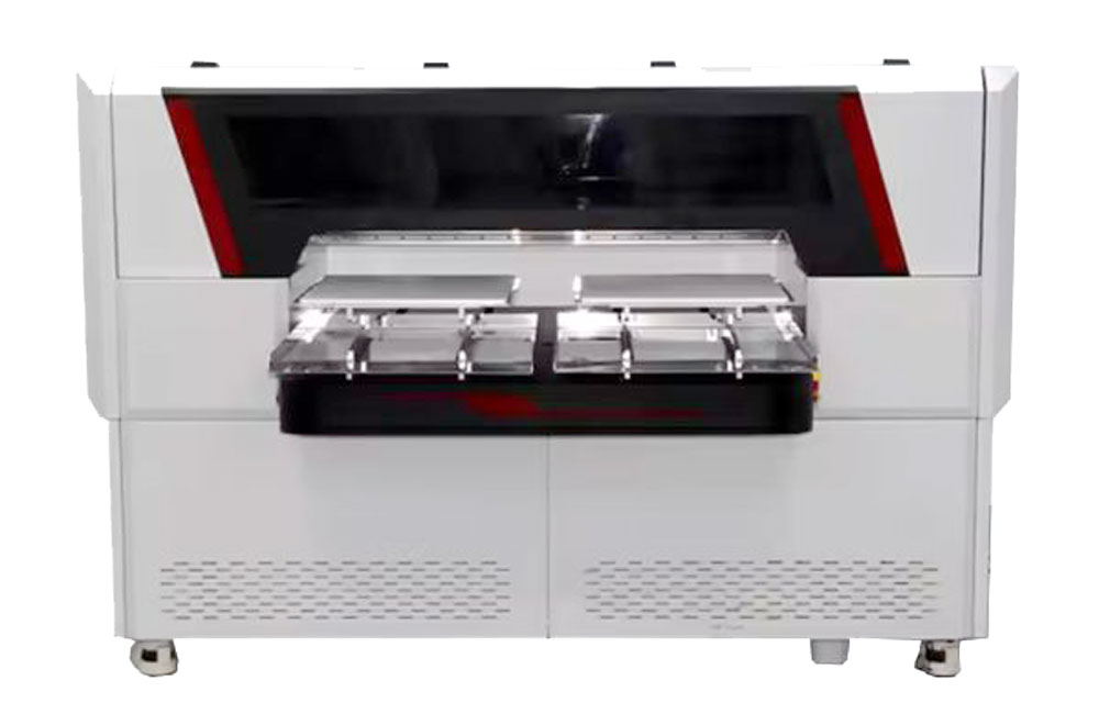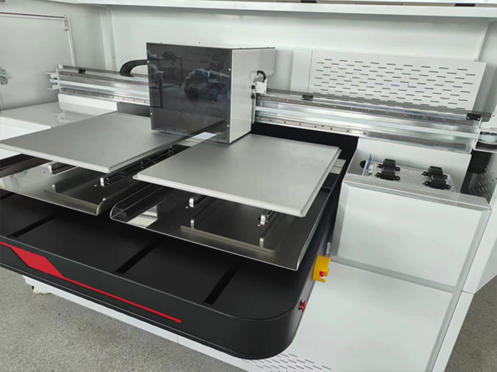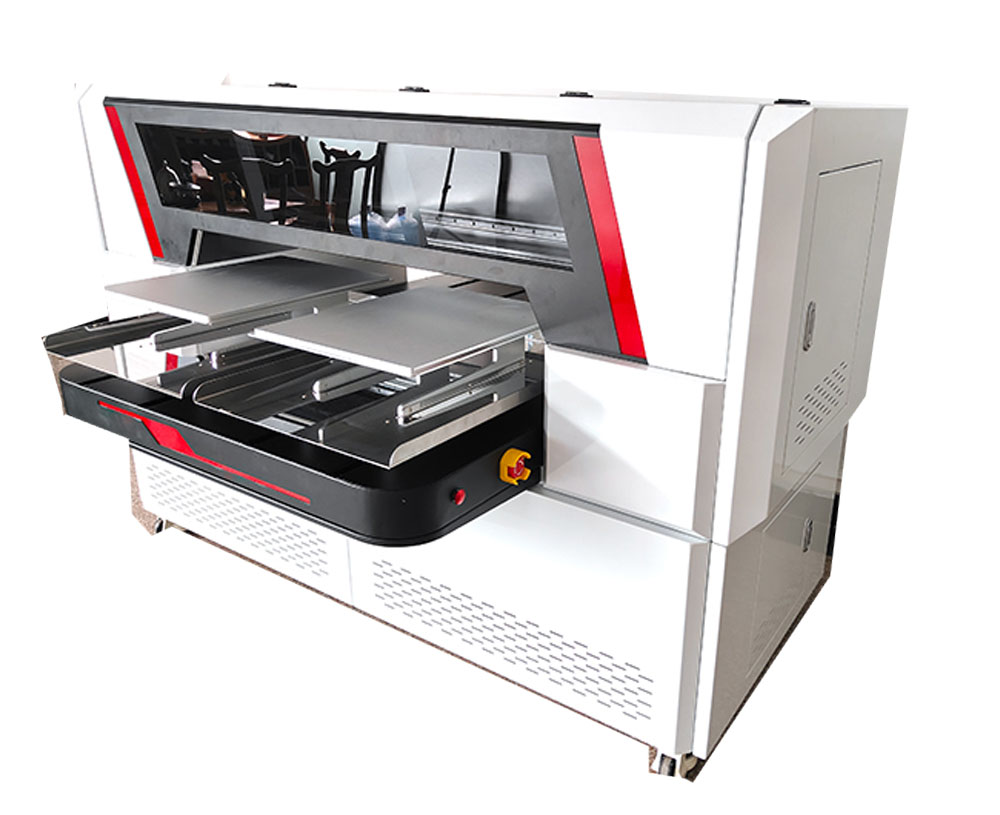 เครื่องพิมพ์ระบบพิมพ์ตรงลงเสื้อ DTG พื้นที่การพิมพ์ 45x55cm มีถาดพิมพ์ 2 ถาด ทำให้ทำงานได้ไวขึ้นบวกกับมีจำนวนหัวพิมพ์ถึง 4 หัวพิมพ์ทำให้พิมพ์ไวใช้เวลาต่อตัวเพียง 1 นาที (ขึ้นอยู่กับโหมดการพิมพ์) ชุดถาดรองเสื้อยังออกแบบมาให้ใส้เสื้อได้ง่าย