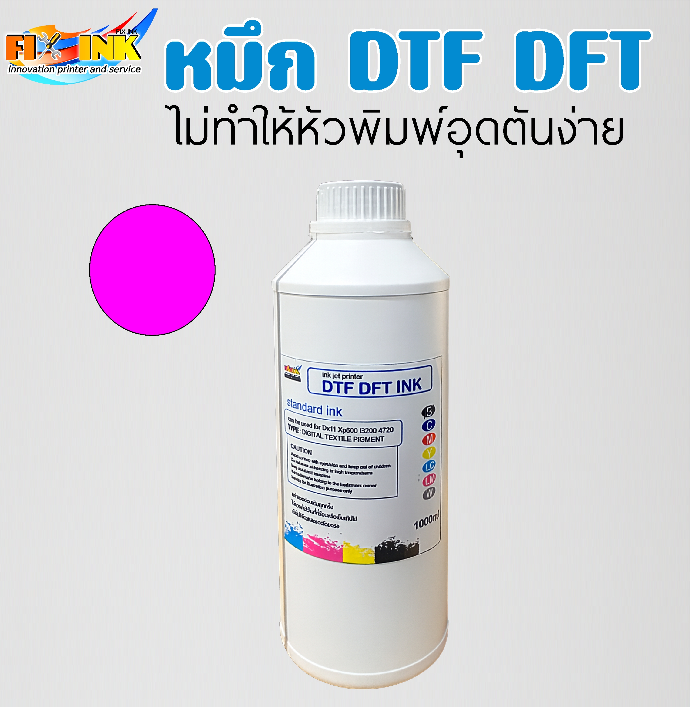 หมึกมาตรฐานสำหรับเติมเครื่องพิมพ์ DTF DFT ที่ใช้หัวพิมพ์ epson Dx11 i3200 i1600 4720 และรุ่นอื่นๆ ที่ผานการเทสและทดสอบโดย fix ink โดยการใส่เครื่องเทสการใช้งานและไม่ใช้งานดูผลต่อการใช้งานให้หมึกขาวที่ทึบงานเด่นไม่ซึมออกข้างสามารถพิมพ์งานต่อเนื่องได้