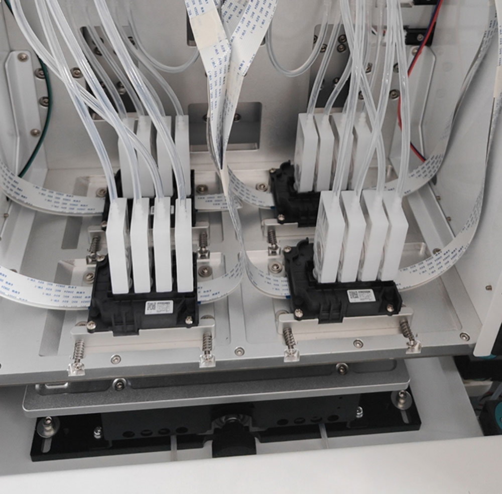 เครื่องพิมพ์ระบบพิมพ์ตรงลงเสื้อ DTG พื้นที่การพิมพ์ 45x55cm มีถาดพิมพ์ 2 ถาด ทำให้ทำงานได้ไวขึ้นบวกกับมีจำนวนหัวพิมพ์ถึง 4 หัวพิมพ์ทำให้พิมพ์ไวใช้เวลาต่อตัวเพียง 1 นาที (ขึ้นอยู่กับโหมดการพิมพ์) ชุดถาดรองเสื้อยังออกแบบมาให้ใส้เสื้อได้ง่าย