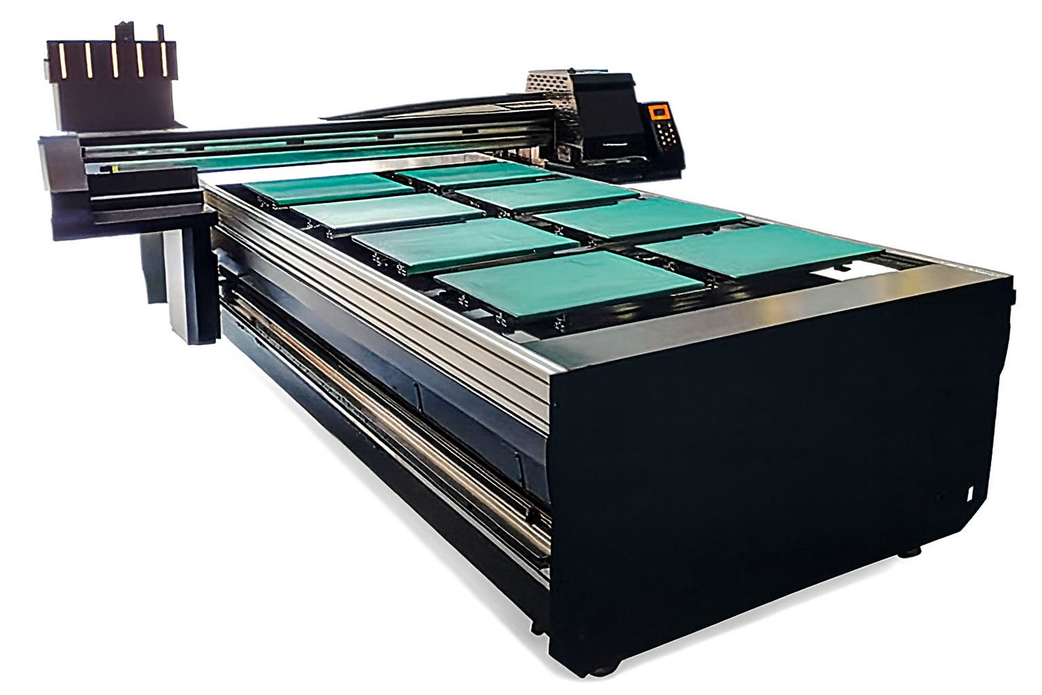 เครื่องพิมพ์ DTG แบบหลายถาดรองชิ้นงานเริ่มต้นที่แบบ 8 ถาดรองเสื้อจนถึง 48 ถาด ระบบ 4 หัวพิมพ์ i3200 ทำงานได้ไวรองรับงานปริมาณมากๆได้มีระบบป้องกันหัวพิมพ์ชนชิ้นงาน ระบบแจ้งเตือนการทำงานของหัวพิมพ์ป้องกันหัวพิมพ์เสียไวมีระบบฮิตเตอร์ช่วยให้น้ำปรับสภาพผ้ามีความชื้นที่เหมาะสมมากขึ้นในการพิมพ์