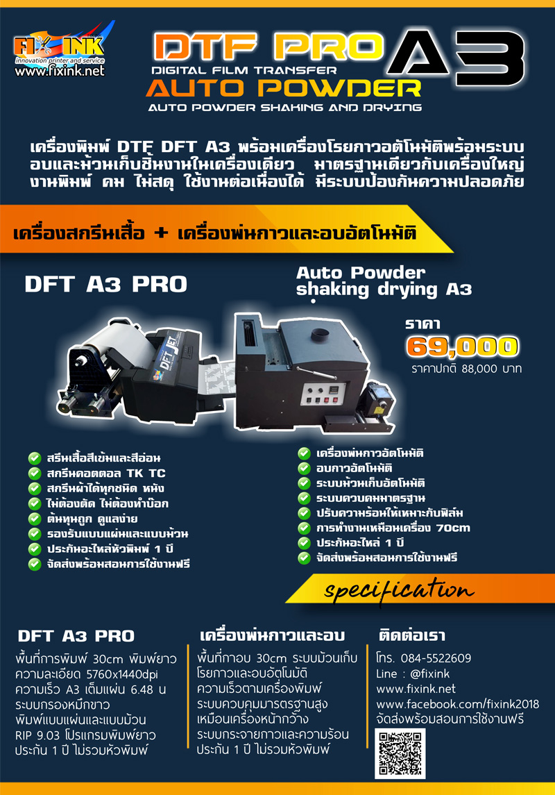 1.DFT DTF A3 PRO + เครื่องโรยกาวและอบอัตโนมัติ A3 ราคา 69,000 บาท จากปกติ 88,000 บาท