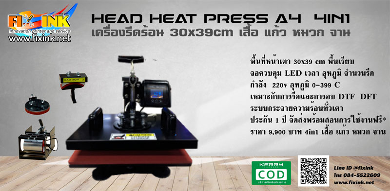 | Model / รุ่น | Head Heat Press A4 เครื่องรีดร้อน 30x39cm แบบสวิงข้าง แบบ 4in1 เสื้อ แก้ว หมวก จาน | |||||||